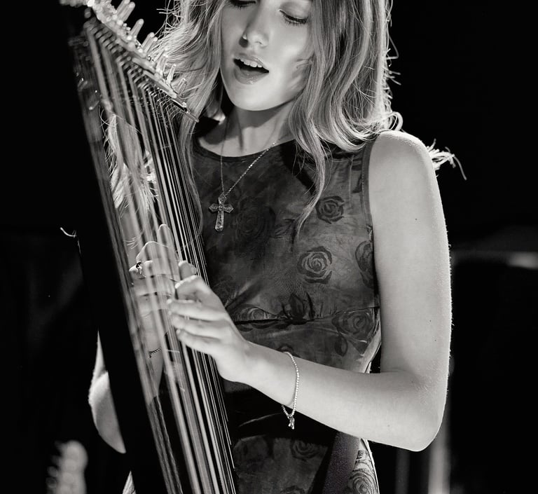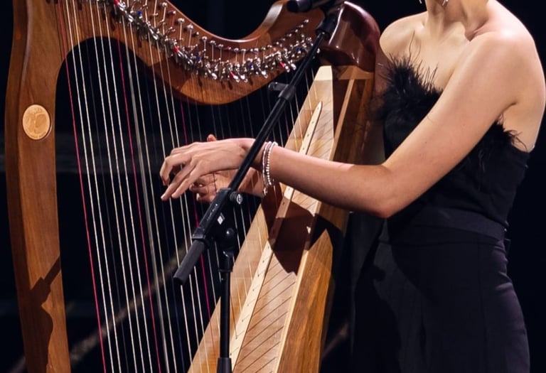 Niamh Noade is an accomplished singer-songwriter and harpist known for her unique fusion of traditional Celtic harp and contemporary music. With a growing presence in the corporate world, Niamh has performed at a number of prestigious events in the UK and Europe including entertaining guests as they were immersed in the world of 'Westeros' at Game of Thrones Corporate events. More recently Niamh performed at the Nordic Business Forum in Finland and the Oslo Business Forum in Norway, captivating audiences of over 10,000 and 6,500 attendees. Sharing the stage with prominent figures including Brene Brown, Niamh continues to inspire and engage diverse corporate audiences with her powerful performances.