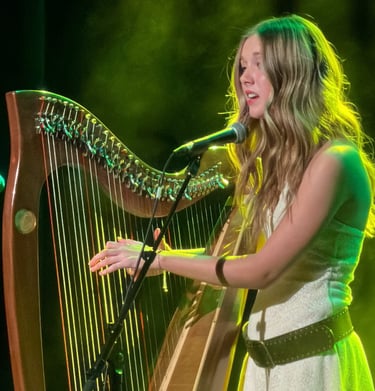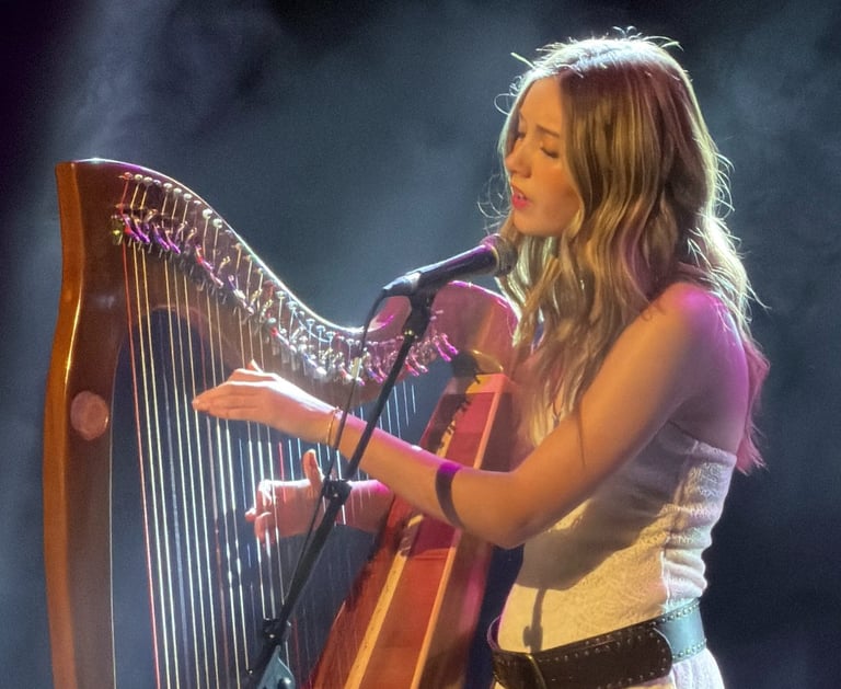 Niamh Noade is a talented singer-songwriter and harpist from Co. Armagh, Ireland, captivating audiences with her blend of traditional Celtic harp and contemporary influences. Known for her unique voice, she gained widespread attention with her performance of “The Winner Takes It All” on The Voice Kids UK 2023, earning over 20 million views. Drawing comparisons to Eva Cassidy and Enya, Niamh is carving out her own musical path with an upcoming EP showcasing her Celtic heritage and modern style. Praised by industry professionals such as Ronan Keating, Pixie Lott, and Will.i.am, Niamh is a rising star, blending her exceptional musical talent with a passion for making a difference.