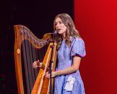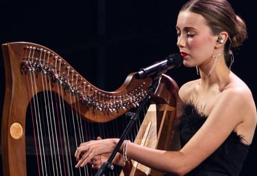 Niamh Noade is an accomplished singer-songwriter and harpist known for her unique fusion of traditional Celtic harp and contemporary music. With a growing presence in the corporate world, Niamh has performed at a number of prestigious events in the UK and Europe including entertaining guests as they were immersed in the world of 'Westeros' at Game of Thrones Corporate events. More recently Niamh performed at the Nordic Business Forum in Finland and the Oslo Business Forum in Norway, captivating audiences of over 10,000 and 6,500 attendees. Sharing the stage with prominent figures including Brene Brown, Niamh continues to inspire and engage diverse corporate audiences with her powerful performances.