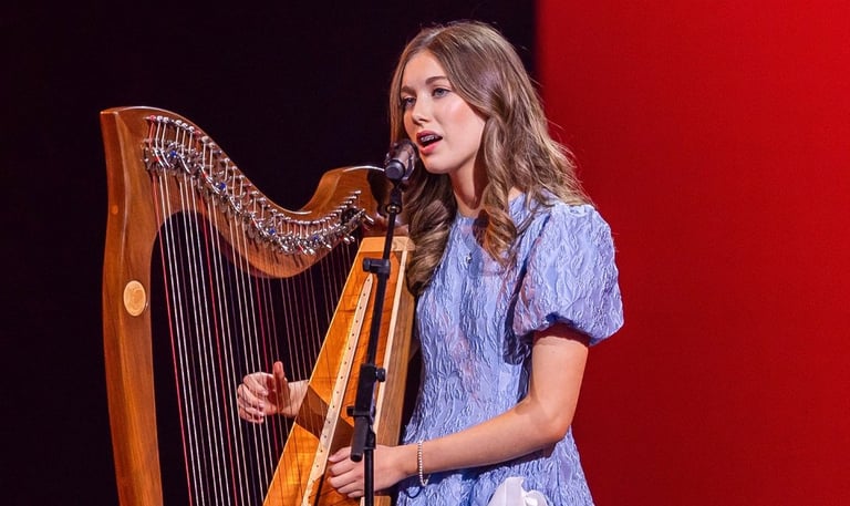 Niamh Noade is a talented singer-songwriter and harpist from Co. Armagh, Ireland, captivating audiences with her blend of traditional Celtic harp and contemporary influences. Known for her unique voice, she gained widespread attention with her performance of “The Winner Takes It All” on The Voice Kids UK 2023, earning over 20 million views. Drawing comparisons to Eva Cassidy and Enya, Niamh is carving out her own musical path with an upcoming EP showcasing her Celtic heritage and modern style. Praised by industry professionals such as Ronan Keating, Pixie Lott, and Will.i.am, Niamh is a rising star, blending her exceptional musical talent with a passion for making a difference.
